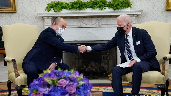 وتعهد بايدن، في أول اجتماع له مع بينيت، بأن ”إيران لن تمتلك سلاحا نوويا“، مشيرا إلى أنه ”ناقش مع بينيت التهديد الذي تشكله إيران والتزامنا بضمان عدم تطوير إيران أبدا لسلاح نووي“.