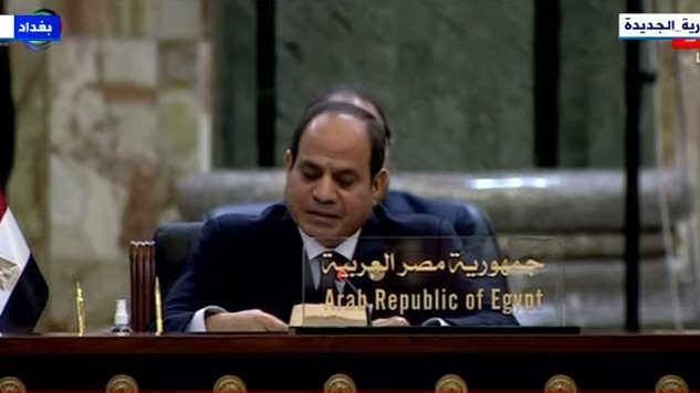 وحضرالرئيس السيسيعلى رأس الوفد المصري، والرئيس الفرنسيإيمانويل ماكرون، وأمير قطر تميم بن حمد، بجانب وفد مجلس التعاون الخليجي ومنظمة التعاون الإسلامي، وممثلين عن الدول الأعضاء في مجلس الأمن الدولي التابع للأمم المتحدة ودول العشرين والأمين العام لجامعة الدول العربية.