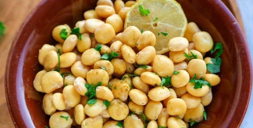 6- نرش الليمون والكمون على الترمس والحمص، ثم نقدمه .