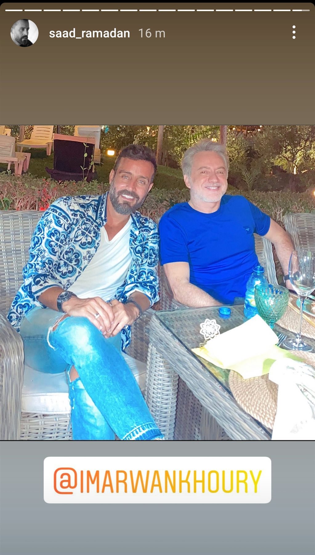 نشر الفنان اللبناني سعد رمضان ، صورة له عبر حسابه الرسمي بتطبيق الصور انستجرام، ظهر فيها مع الفنان مروان خوري، ظهرا فيها بأحد السهرات بعد فترة العزل التي قضاها «رمضان» بسبب إصابته بفيروس كورونا المستجد.