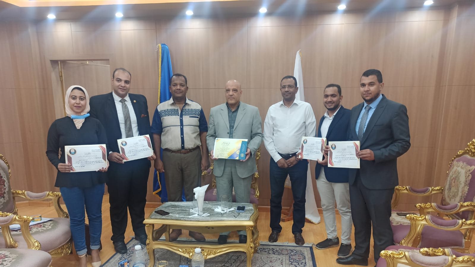 سلم وفد أعضاء هيئة التدريس بجامعة أسوان القائم بأعمال رئيس الجامعة الدكتور أيمن محمود عثمان شهادة التميز للجامعة من معهد إعداد القادة بحلوان، بحضور الهيئة المعاونة الفائزين بالمراكز الأولي بمعهد إعداد القادة، وحضر اللقاء أيضاً الدكتور ياسر عبدالحميد عميد كلية الزراعة والموارد الطبيعية، والدكتور أيمن عبدالغفار عميد كلية الحقوق وذلك عن دوره إعداد القائد العام لأعضاء الهيئة المعاونه لأعضاء هيئة التدريس فى دورته الأولى.