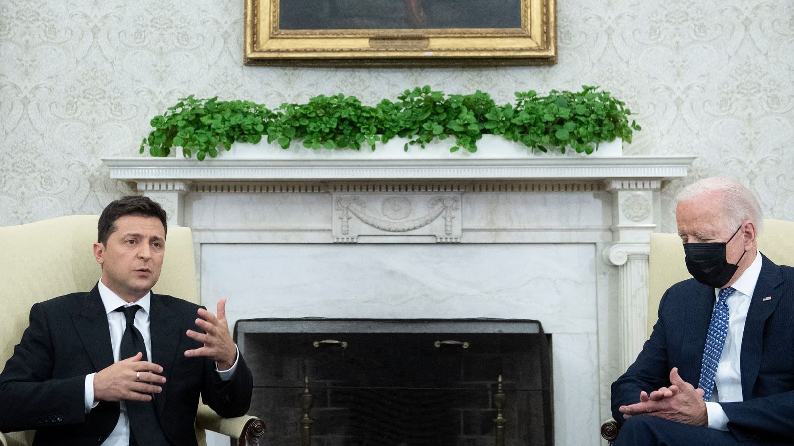 وقال بايدن لدى استقباله ضيفه في المكتب البيضاوي، إن "الولايات المتحدة لا تزال مصممة على دعم سيادة أوكرانيا ووحدة أراضيها في مواجهة العدوان الروسي".