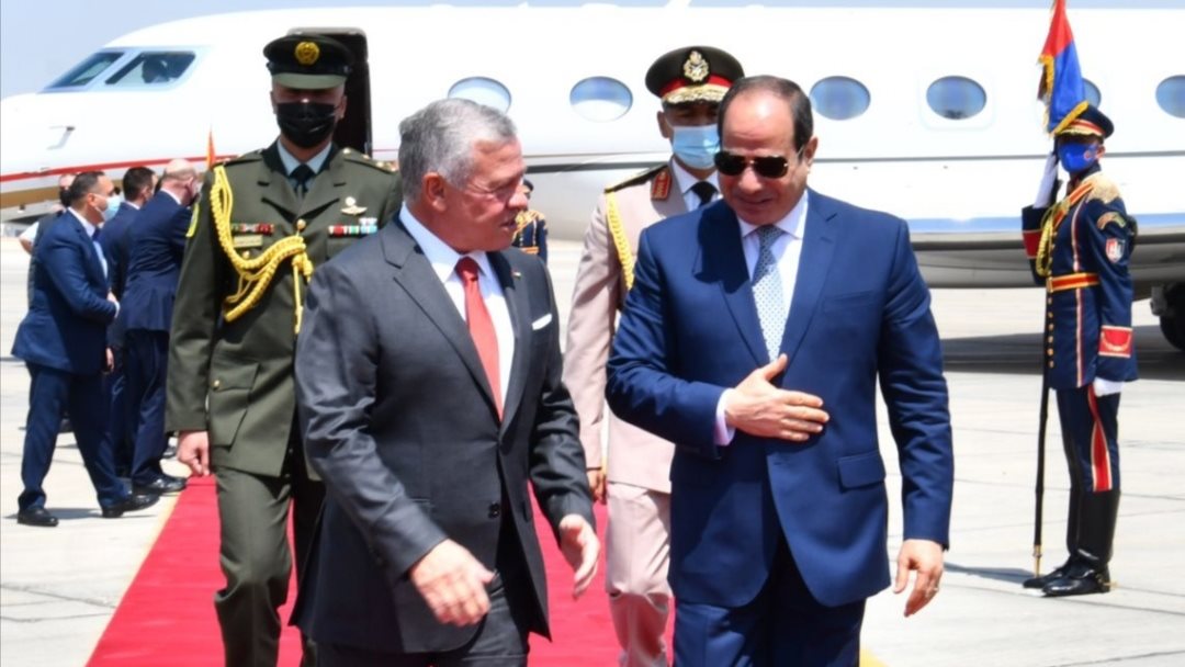 وأكد الرئيس السيسي والملك عبد الله الثاني، على مركزية القضية الفلسطينية، وأنها القضية العربية الأولى، وعلى مواقف مصر والأردن الثابتة في دعم الشعب الفلسطيني الشقيق وحقوقه المشروعة في إقامة دولته على حدود 4 يونيو 1967، وعاصمتها القدس الشرقية، ووفقا لقواعد القانون الدولي وقرارات الشرعية الدولية ذات الصلة ومبادرة السلام العربية.