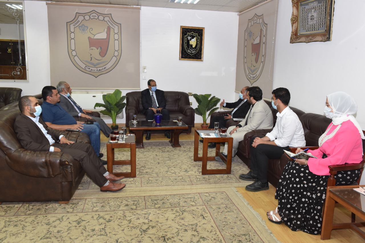 عقد الدكتور مصطفى عبدالخالق القائم بعمل رئيس جامعة سوهاج، اجتماعاً موسعاً مع عمداء ووكلاء الكليات ومسئولي وحدة IT بجميع الكليات، لوضع التصور النهائي لرفع المقررات الدراسية بصورة إلكترونية على المنصة التعليمية Zad.