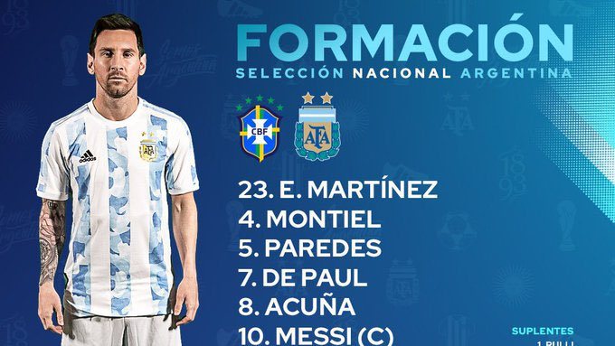 أعلن تيتى، المدير الفني للمنتخب البرازيلي، وليونيل سكالونى، مدرب منتخب الأرجنتين، التشكيل الأساسى الذى سيخوض لقاء الفريقين على ملعب "أرينا كورينثيانز" بمدينة ساو باولو، ضمن تصفيات الجولة السادسة من تصفيات أمريكا الجنوبية المؤهلة لنهائيات كأس العالم 2022.
