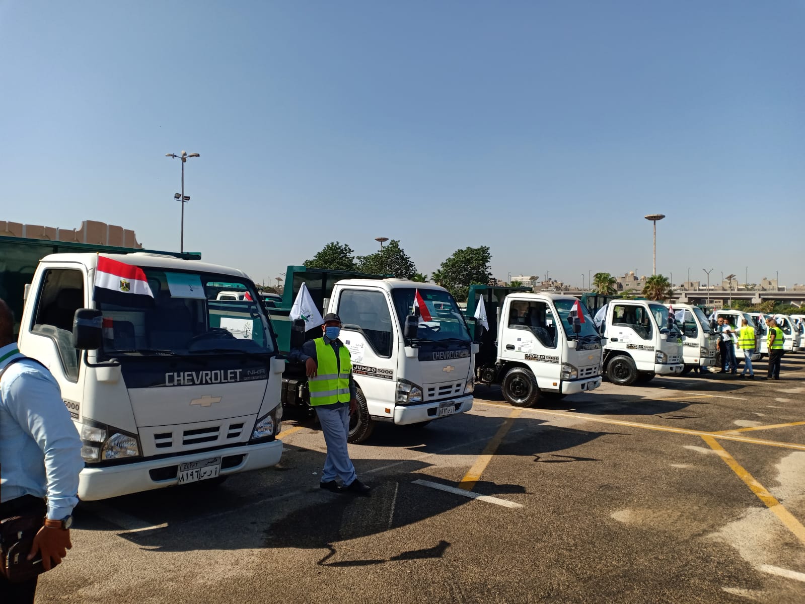 ورصد موقع صدى البلد معدات الشركتين وهيئة النظافة والتجميل بمحافظة القاهرة والتي اصطفت قبل إطلاق المنظومة في استاد القاهرة.