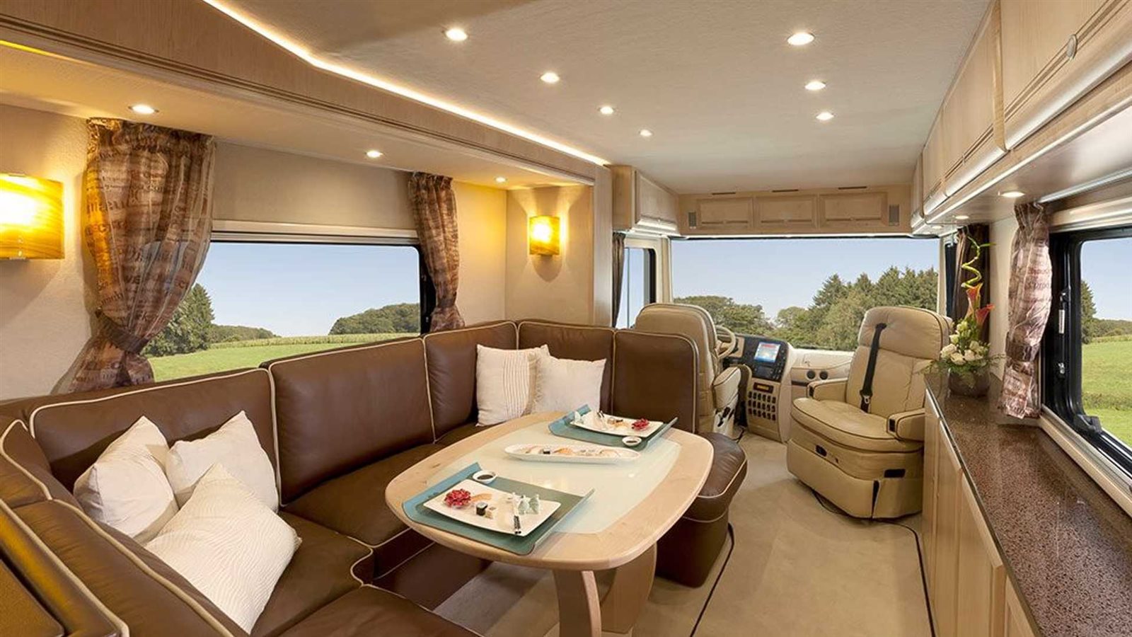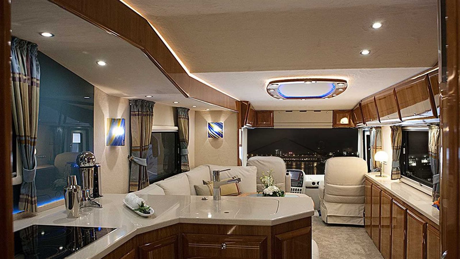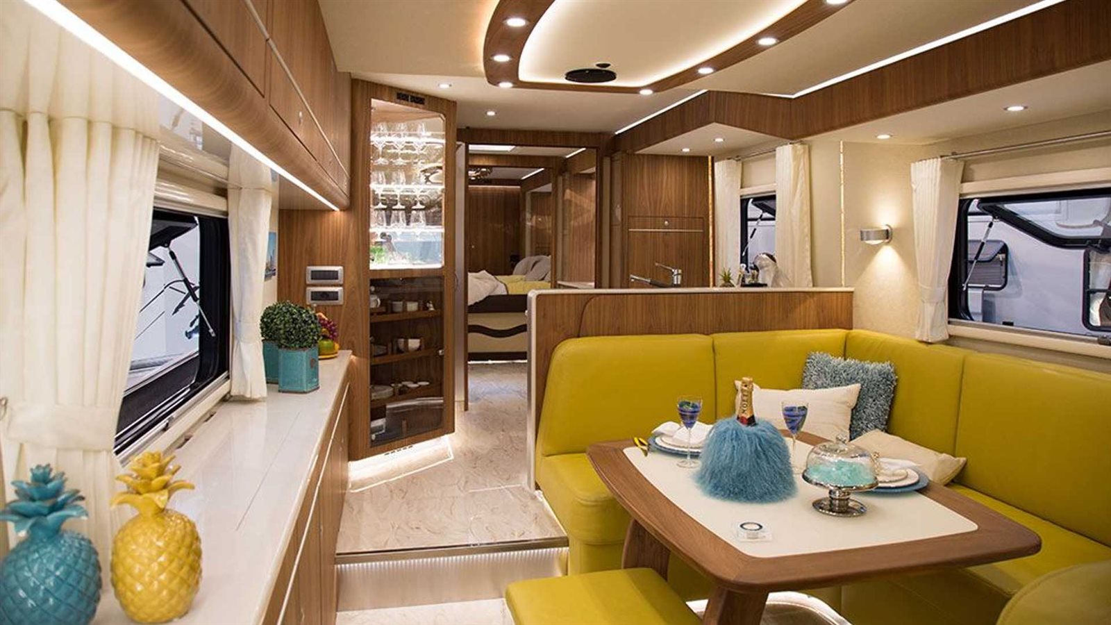 تتميز البيوت المتنقلة لـ"فولكنر" بالفخامة وأحدث وسائل الراحة والرفاهية، حافلة الـPerformance S مزودة بأحدث الأنظمة الصوتية من شركةBurmester كما تعتبر منطقة تخزين الأطباق والأكواب في منتهى الفخامة والأناقة، الحمام واسع ومريح بمعايير المنزل المتنقل ومزودة بتنجيد أبيض فاخر، كما تحتوي على مطبخ كامل مثل المنازل تماما يوجد مطبخ كامل، مثل المنازل تمامًا وفرن وميكروويف وثلاجة وغسالة صحون وحتى آلة إسبرسو، وتقدم الشركة أيضًا خزانة نبيذ.