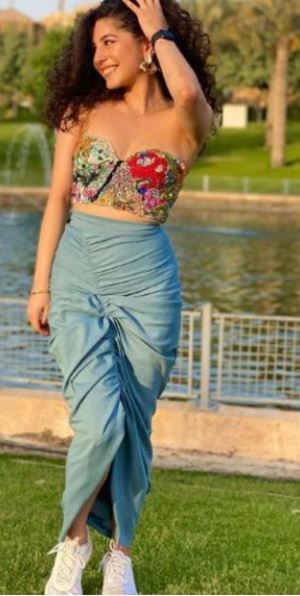 واحدة من أكثر بنات جيلها حرصا على التقاط الصور، وتتسم ملابسها الصيفية بالجرأة الشديدة، ومنذ أيام لفتت انتباه المتابعين على منصات التواصل الاجتماعي، إذ ظهرت بإطلالة جذابة أمام منزلها، وهي ترتدي تنورة فوق الركبة، وبلوزة مجسمة على الجسد ومفتوحة الصدر، وأرفقت هذه الصورة بتعليق: «من الصعب أن نفهم الإنسان الباحث عن السلام والهدوء وسط الزحام، وسط الكم الكبير من الناس والفوضى».