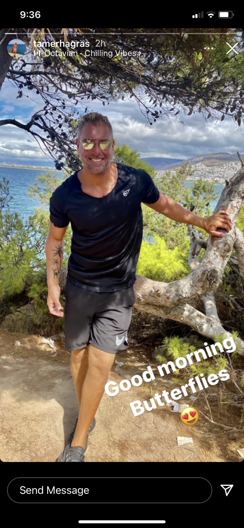 وظهر تامر هجرس في الصورة من بين الأشجار و خلفه البحر و ذلك وهو يستمتع بقضاء عطلته الصيفية، وقد أثارت الصورة إعجاب متابعيه.