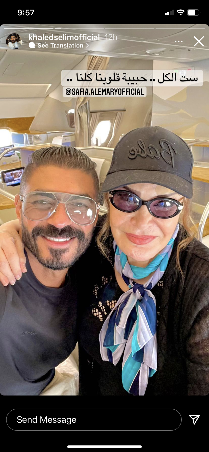 وظهر خالد سليم ، مع الفنانة صفية العمري، وعلق قائلًا: “ ست الكل حبيبة قلوبنا كلنا” .