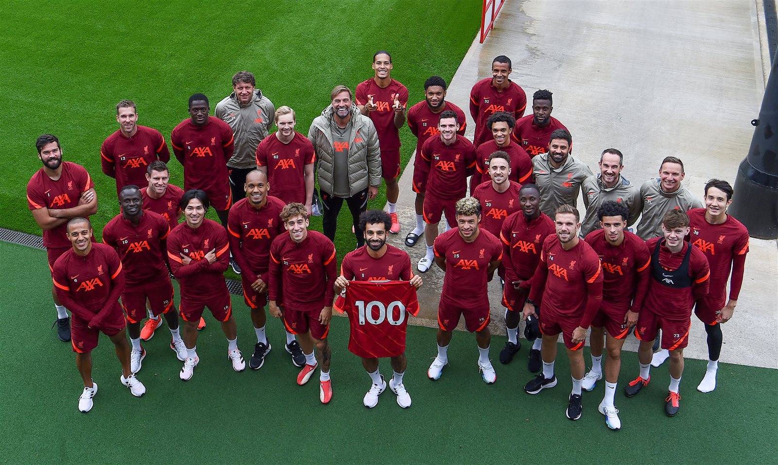 ونشر نادي ليفربول عبر موقعه الإلكتروني صورة لـ محمد صلاح ممسكًا بقميص يحمل رقم 100، وسط زملائه في ليفربول والجهازالفني للفريق، احتفالًا بتحقيقه ذلك الإنجاز التاريخي.