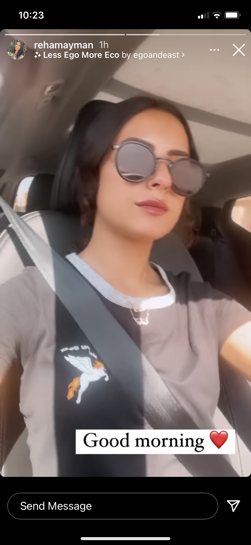 وظهرت ريهام أيمن في الصورة بإطلالة صباحية من سيارتها، معلقة عليها :" صباح الخير ".