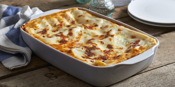 5-فى وعاء الفرن توضع الصلصة البيضاء ويتم توزيع شرائح لازانيا فوق الصلصة البيضاء، ووضع كمية من خليط اللحم فوقها وتكرار العملية إلى أن يمتلئ الوعاء الخاص بالفرن .