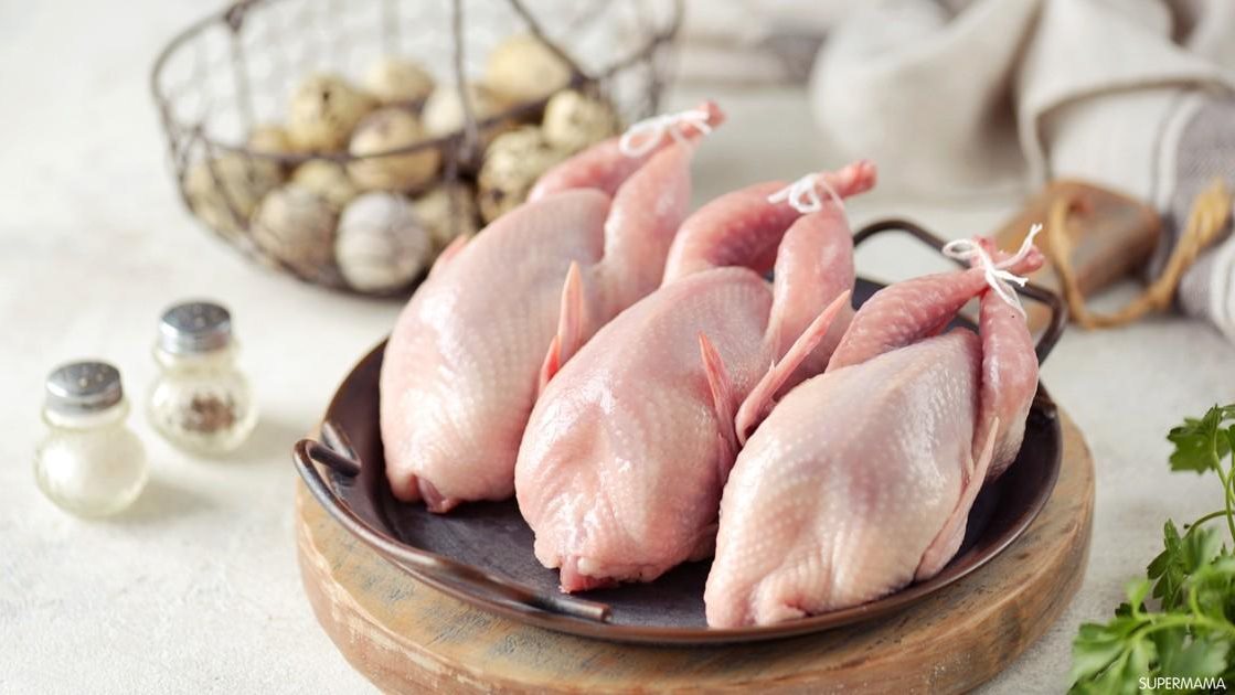 كمية من طيور السمان منظفة ومغسولة جيداً