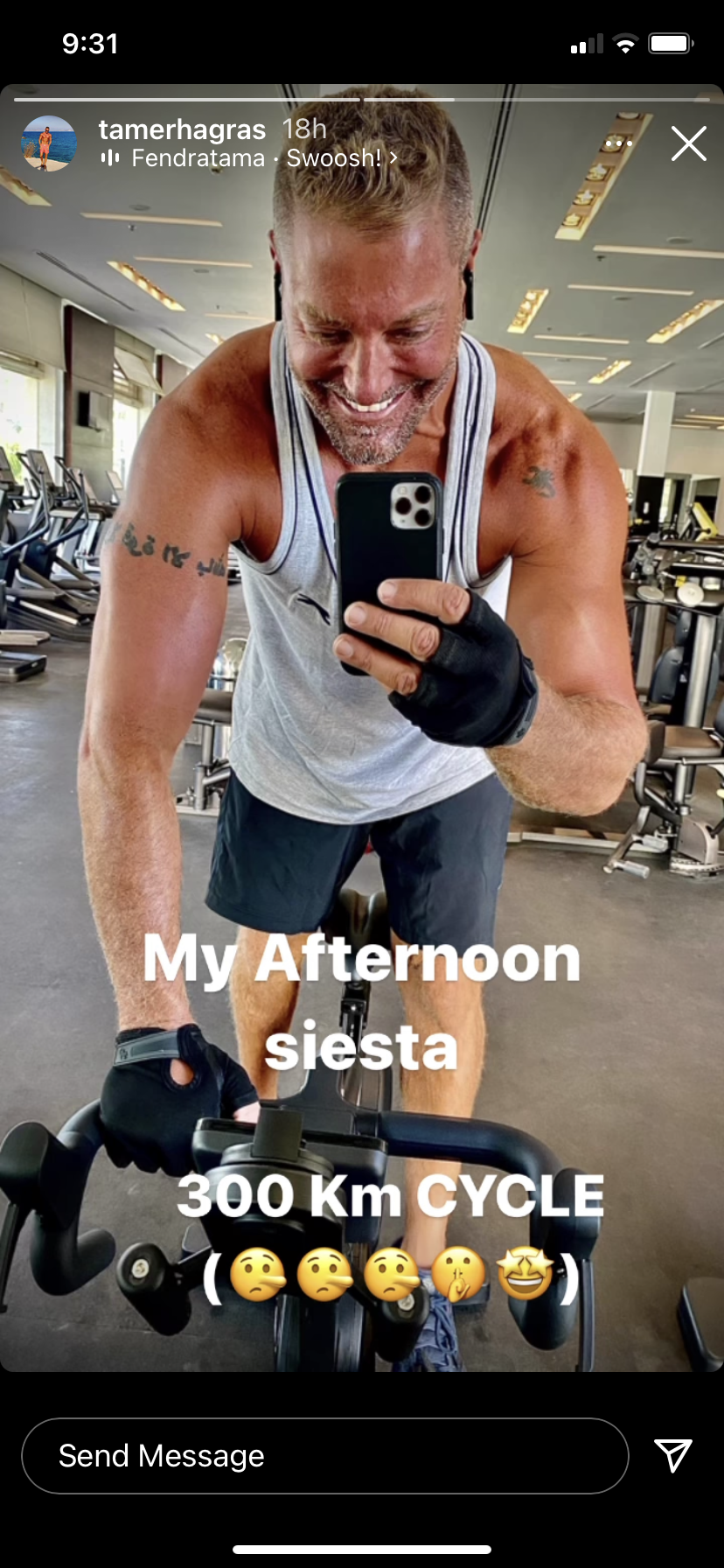 وظهر تامر هجرس في الصورة من داخل الجيم ، وقد أثارت الصورة إعجاب متابعيه.