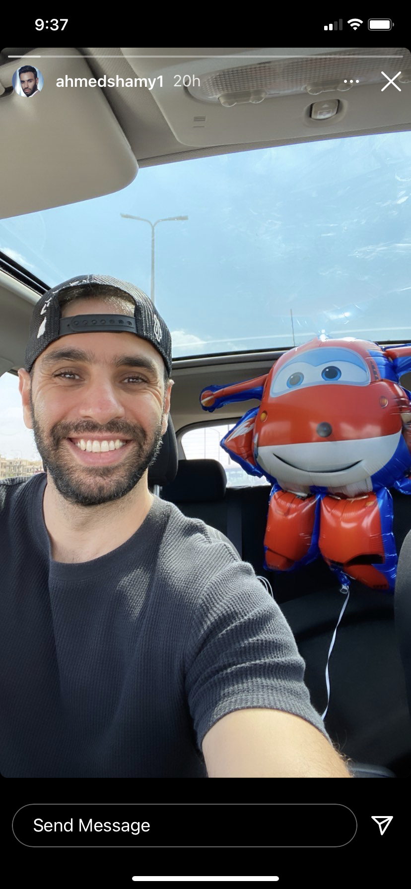 و ظهر أحمد الشامي في الصورة من سيارته مما أثار إعجاب متابعيه .
