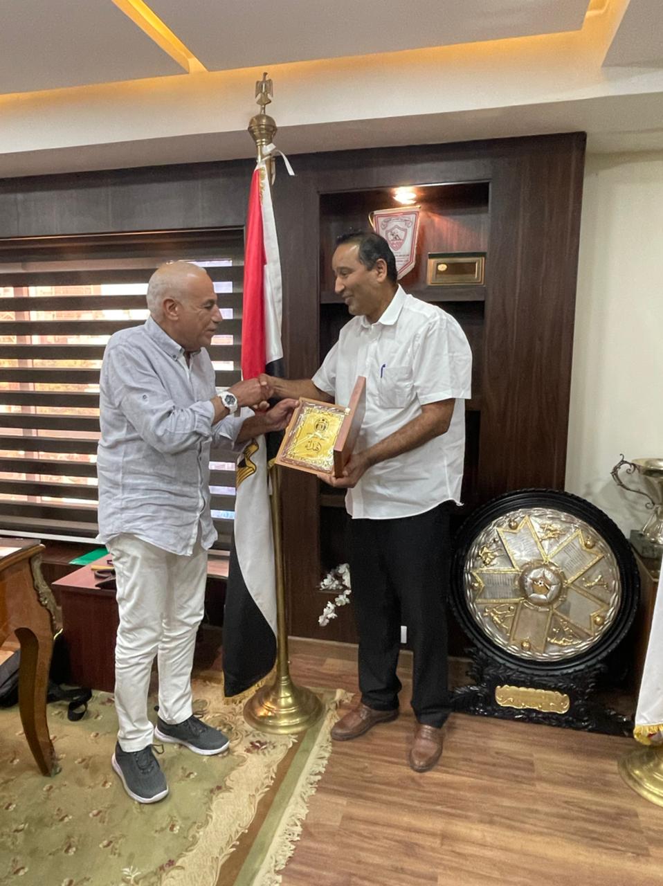 وكان في استقبال الوفد الليبي الدكتور حسين السمري المدير التنفيذي عضو اللجنة المكلفة بإدارة نادي الزمالك، والكابتن حسين السيد عضو اللجنة، والدكتور عاطف النمر مدير النشاط الرياضي عضو اللجنة.