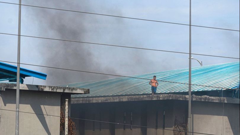 تداول رواد التواصل الإجتماعي مقاطع فيديو عبر تويتر لصراخ و أصوات تكسير داخل السجن و فرار السجناء على أسطع المباني في السجن بالإكوادور هربا من حرب العصابات التي نشبت بين عصابات للمخدرات في السجن .