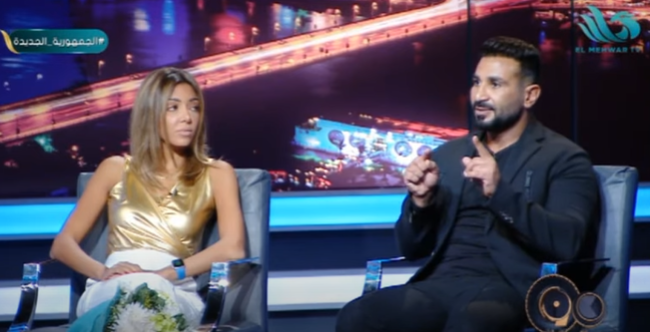 قبلت علياء بسيوني يد زوجها الفنان أحمد سعد، على الهواء، خلال استضافتها مع الإعلامية بسمة وهبة مقدمة برنامج «90 دقيقة»، على قناة «المحور»، بعدما غنى لها على الهواء أغنية كتبها بنفسه.