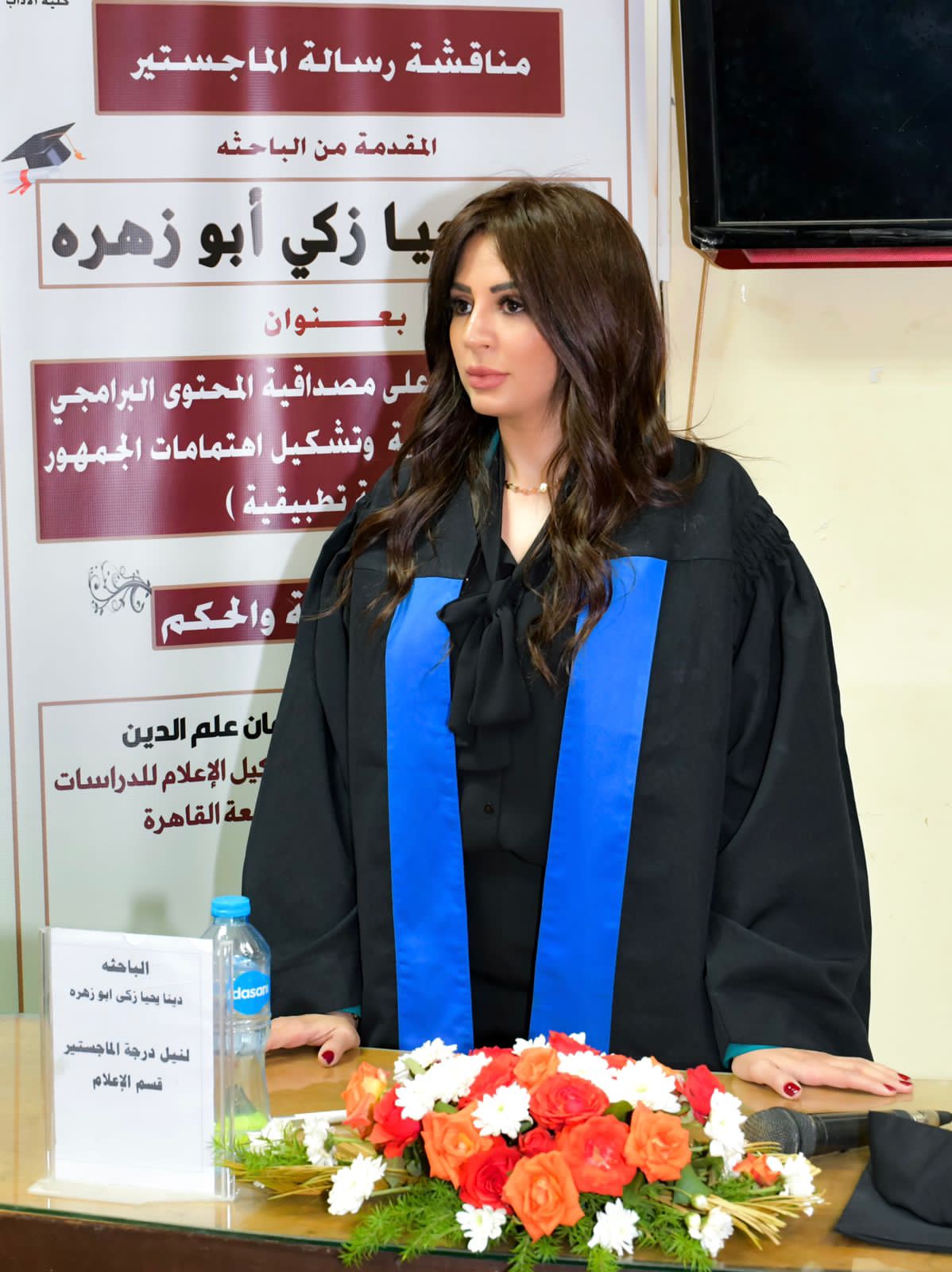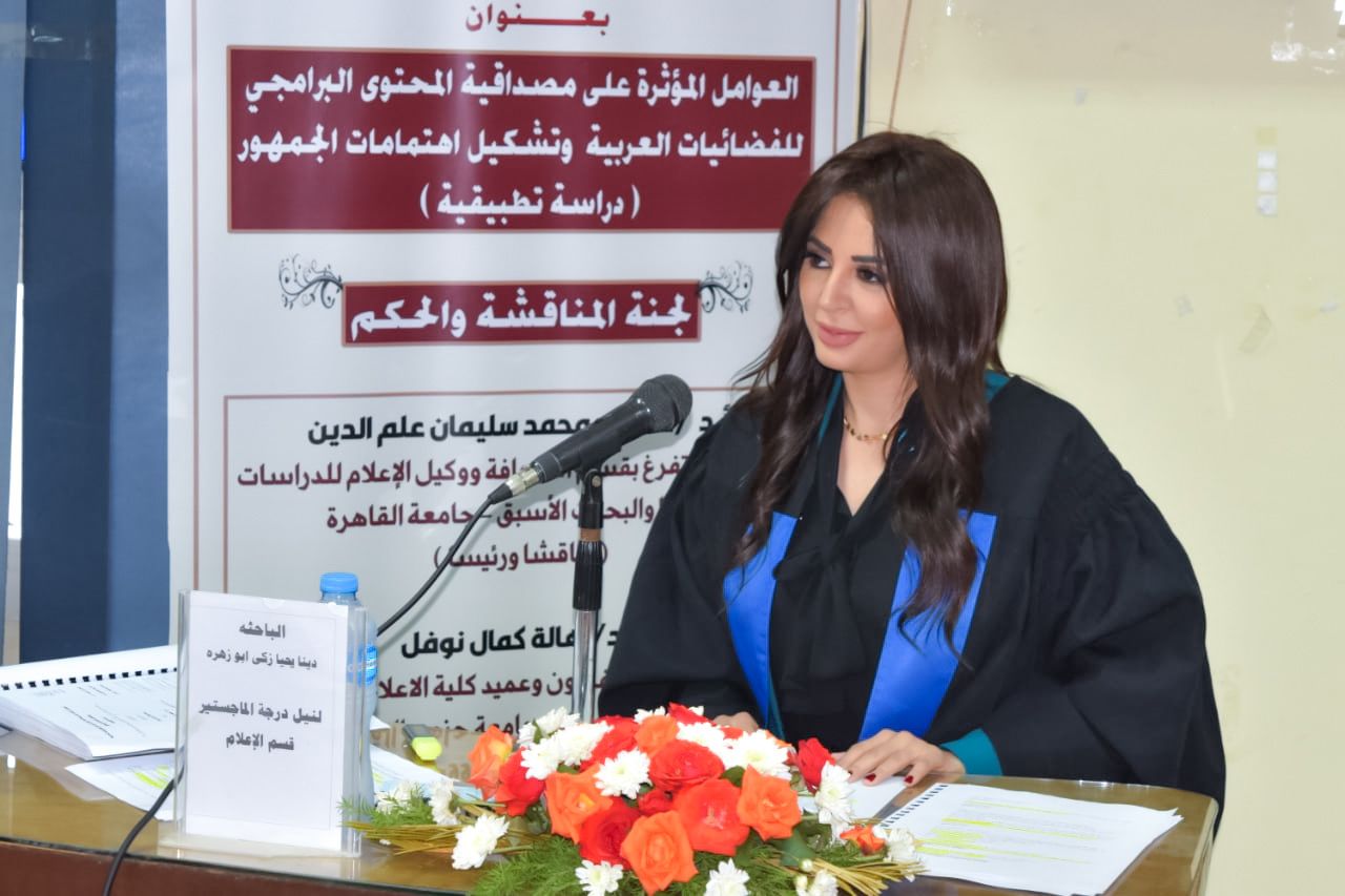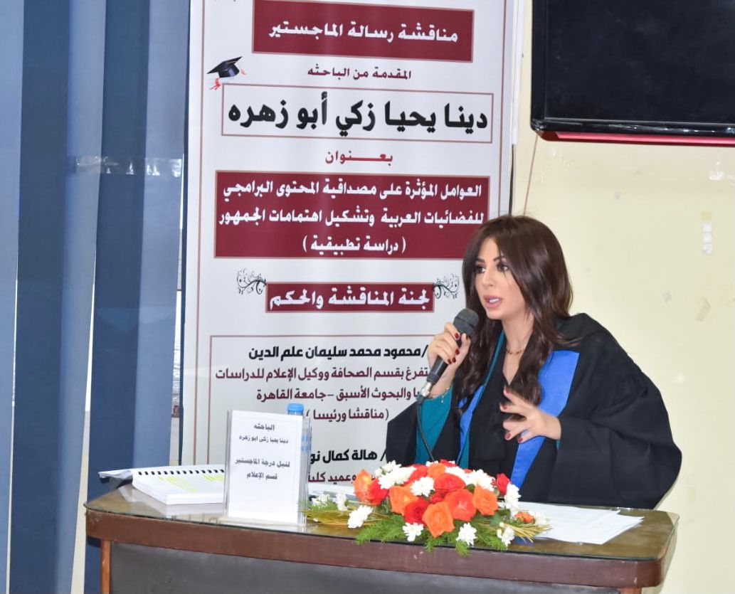 وكانت الرسالة التى قدمتها الباحثة حول «العوامل المؤثرة فى مصداقية المحتوى البرامجى للفضائيات العربية وتشكيل اهتمامات الجمهور».