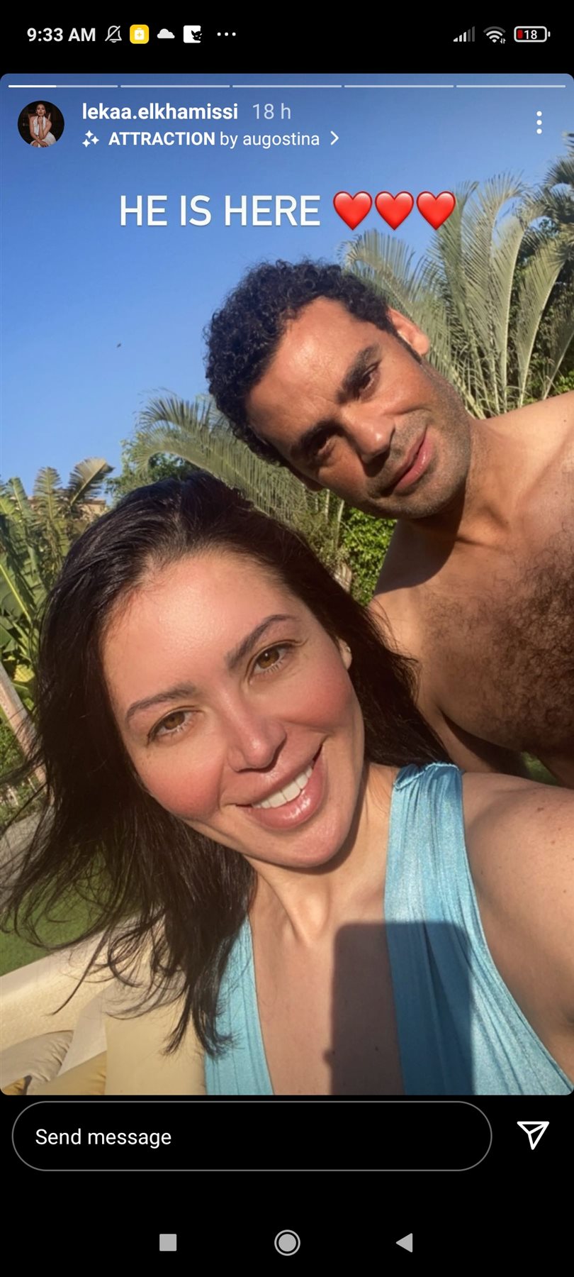 ظهرت لقاء الخميسي في الصورة بإطلالة صيفية مع زوجها محمد عبد المنصف حارس مرمي الزمالك السابق مما آثار إعجاب متابعيها.