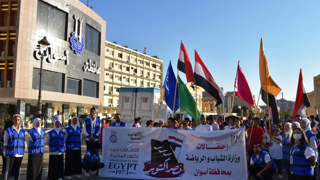 وكانت قد إستكملت محافظة أسوان اليوم فعاليات وأنشطة الإحتفال بالذكرى الـ 48 لإنتصارات حرب أكتوبر المجيدة حيث تم تنظيم مهرجان رياضى للمشى تحت رعاية الدكتور أشرف صبحى وزير الشباب والرياضة ، واللواء أشرف عطية محافظ أسوان .