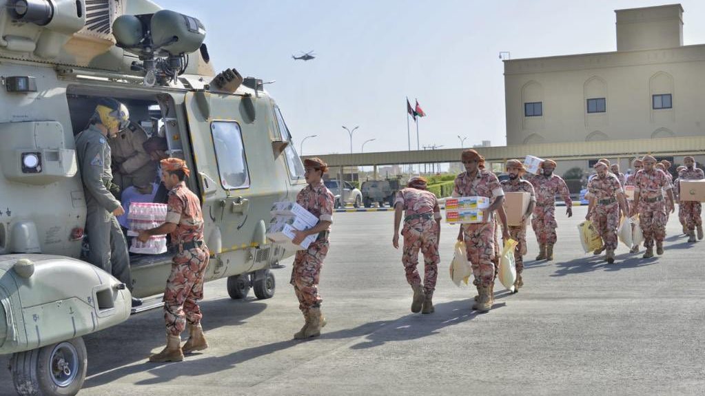 ووفقا لوكالة الأنباء العمانية، واصل سلاح الجو السلطاني العماني عمليات نقل المواد التموينية الى المتضررين ، حيث قام صباح اليوم بنقل عدد من المؤن لأهالي المناطق المتضررة بمحافظة شمال الباطنة وبإسناد من الجيش السلطاني العماني و الهيئة العمانية للأعمال الخيرية.