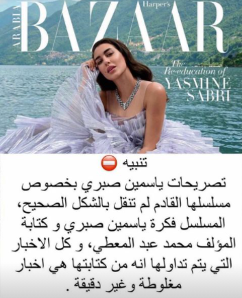 وكتبت ياسمين صبري عبر خاصية “الاستوري” بموقع التواصل الاجتماعي انستجرام، أن التصريحات بخصوص المسلسل لم تنقل بالشكل الصحيح، المسلسل فكرة ياسمين صبري وكتابة المؤلف محمد عبد المعطي.