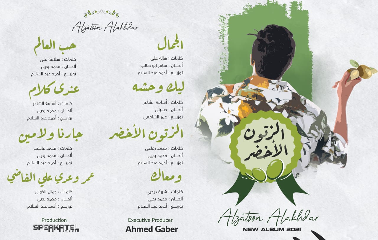 "الزيتون الأخضر" من كلمات محمد رفاعي، ألحان محمد يحيى، توزيع أحمد عبد السلام.