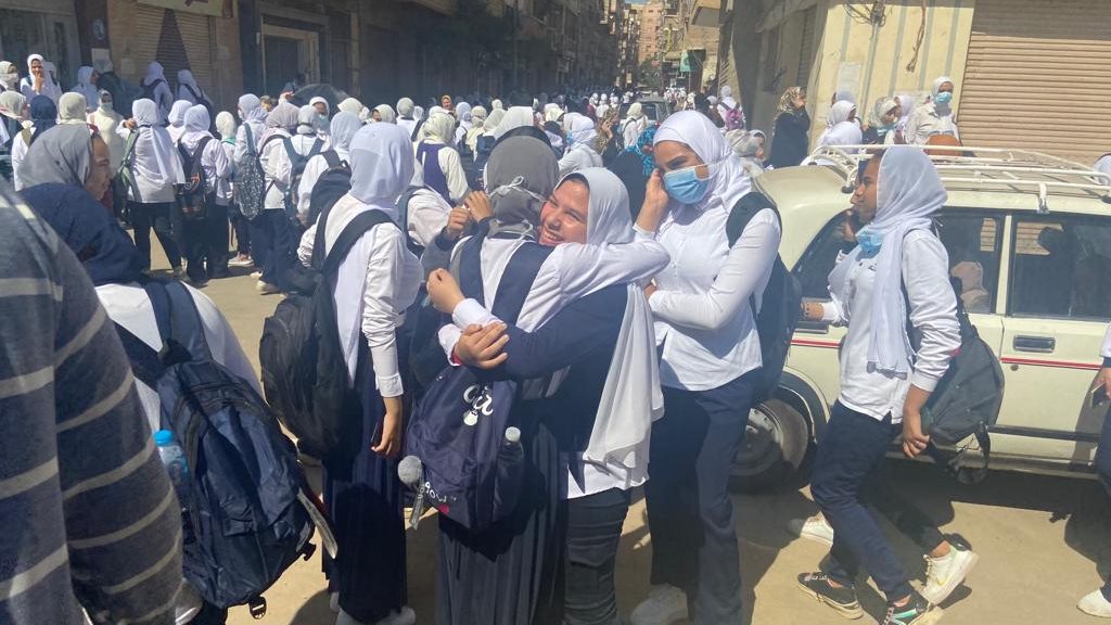 شيع المئات من أهالى مركز إيتاى البارود بمحافظة البحيرة، جثمان الطالبتينضحايا حادث اصطدام سيارة نقل بهم أثناء عبور الطريق الزراعى.