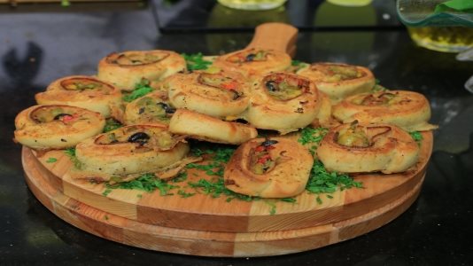 3- يقلب الخليط حتى الحصول على عجينة تقطع العجينة لكرات وتترك لتختمر