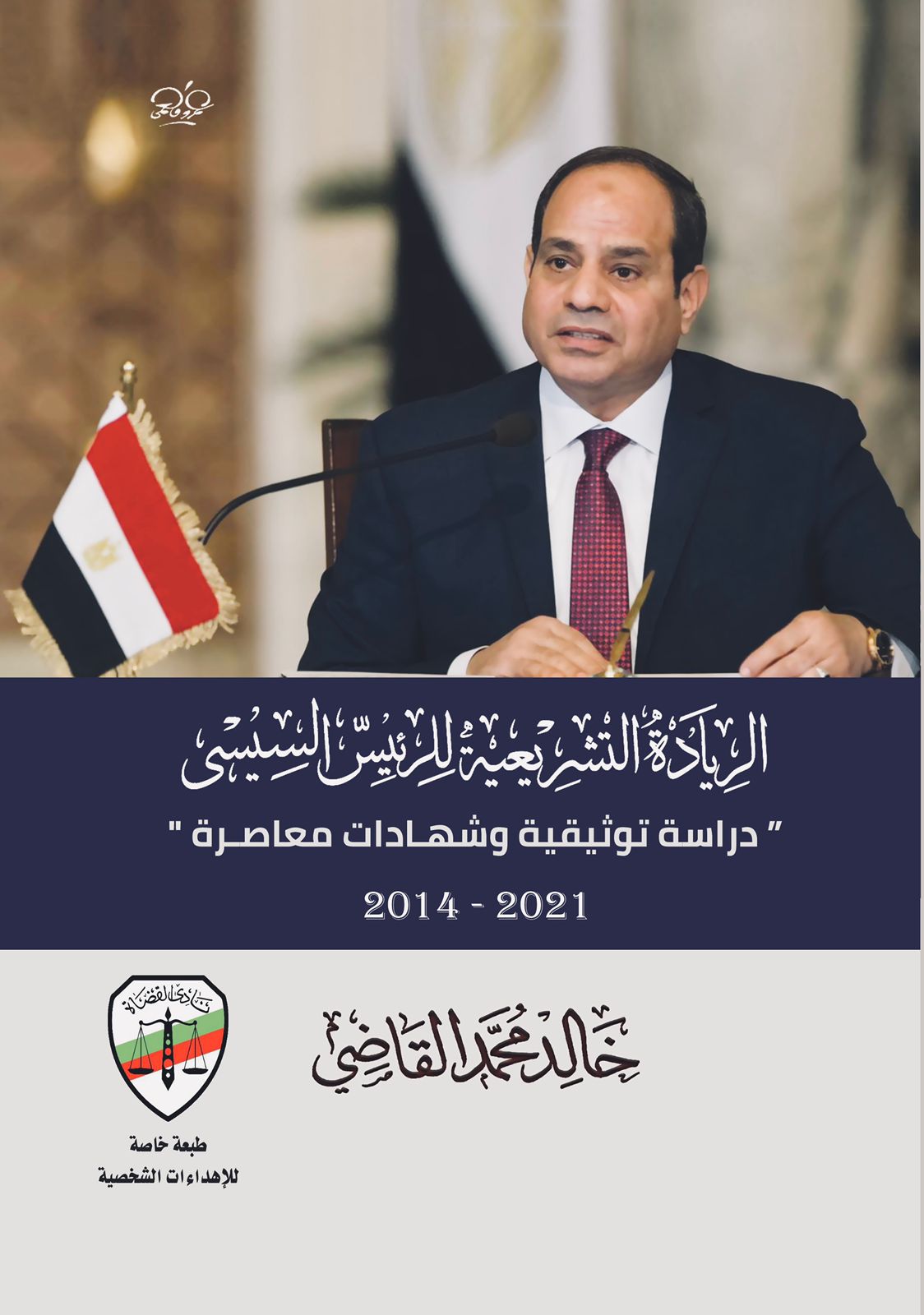 أصدر الدكتور خالد القاضي طبعة خاصة من كتابه الأحدث "الريادة التشريعية للرئيس السيسي"، عن نادي القضاة، طبعت بمطابع الشرطة ، في 400 صفحة من القطع الكبير .