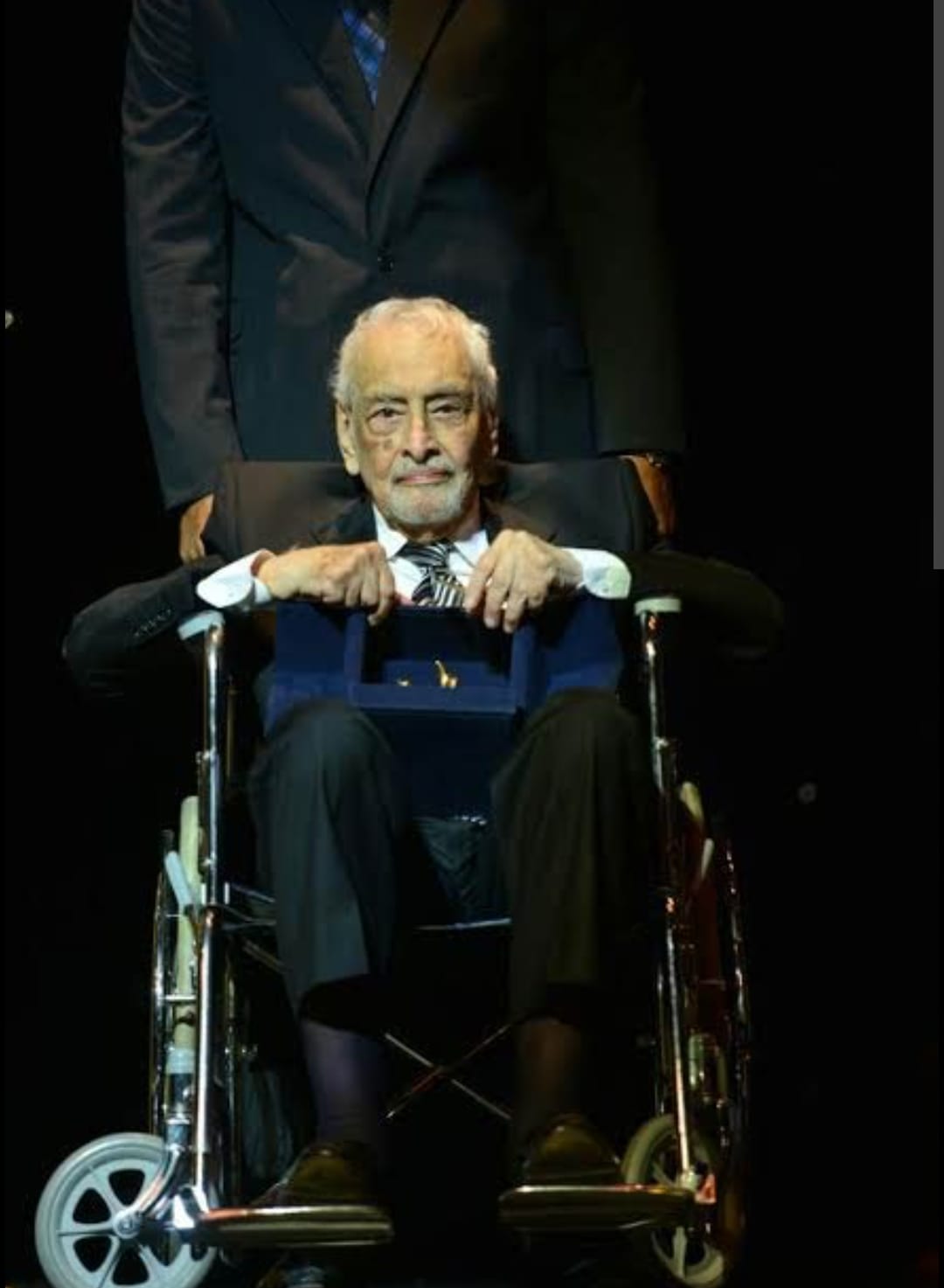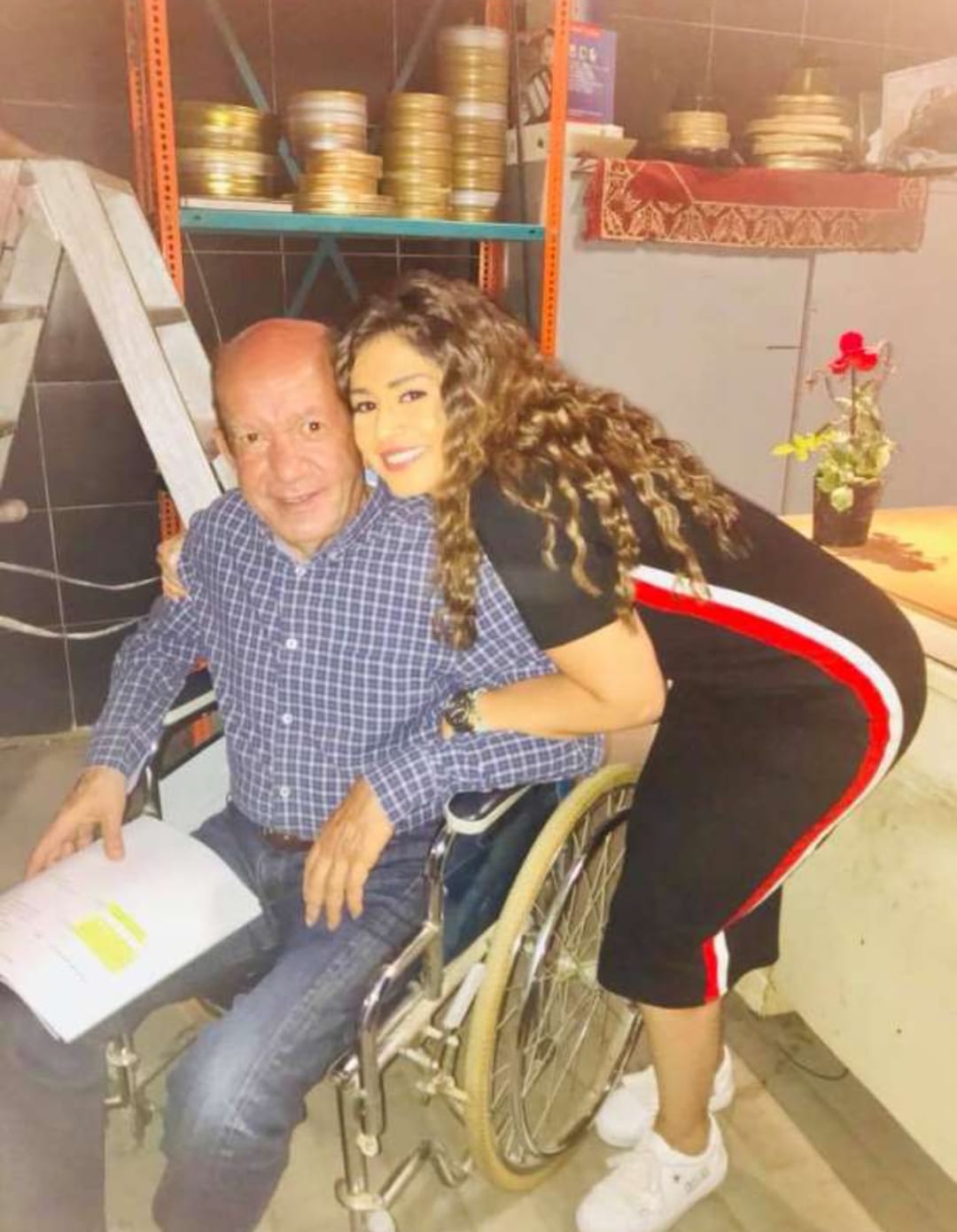 ظهر الفنان لطفي لبيب على كرسي متحرك مع الفنانة منة فضالي ؛ بعد أن نشرت على مواقع التواصل الاجتماعي، صورة تجمعها به من كواليس تصوير فيلم "براءة ريا وسكينة".