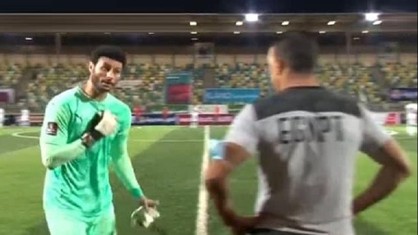 وتحدث الشناوي خلال سقوطه على الأرض مع زميله في المنتخب أحمد حجازي، وبعد خروجه من الملعب وتوجه لمقاعد البدلاء، انفعل في وجه مدرب حراس المرمى لمنتخب مصر، عصام الحضري، كما تحدث مع الجهاز الفني، معبرا عن استيائه من المشاركة في المباراة.