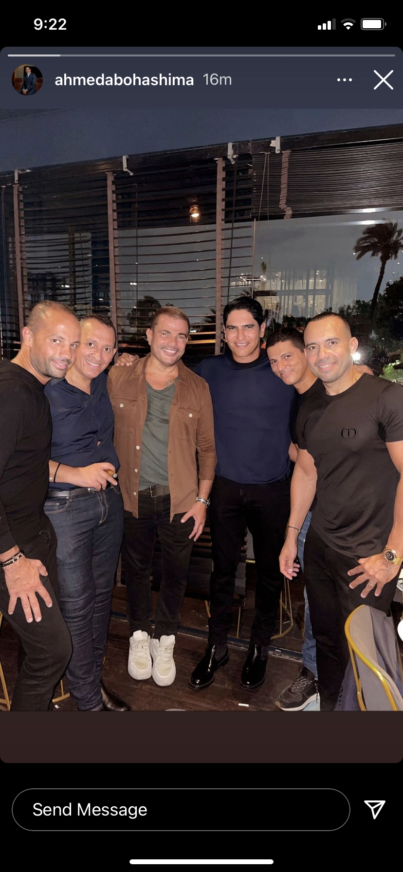 وظهر أبو هشيمة في الصورة بصحبة عمرو دياب و عمرو منسي و عدد من أصدقائهم مما اثارت اعجاب متابعيه.
