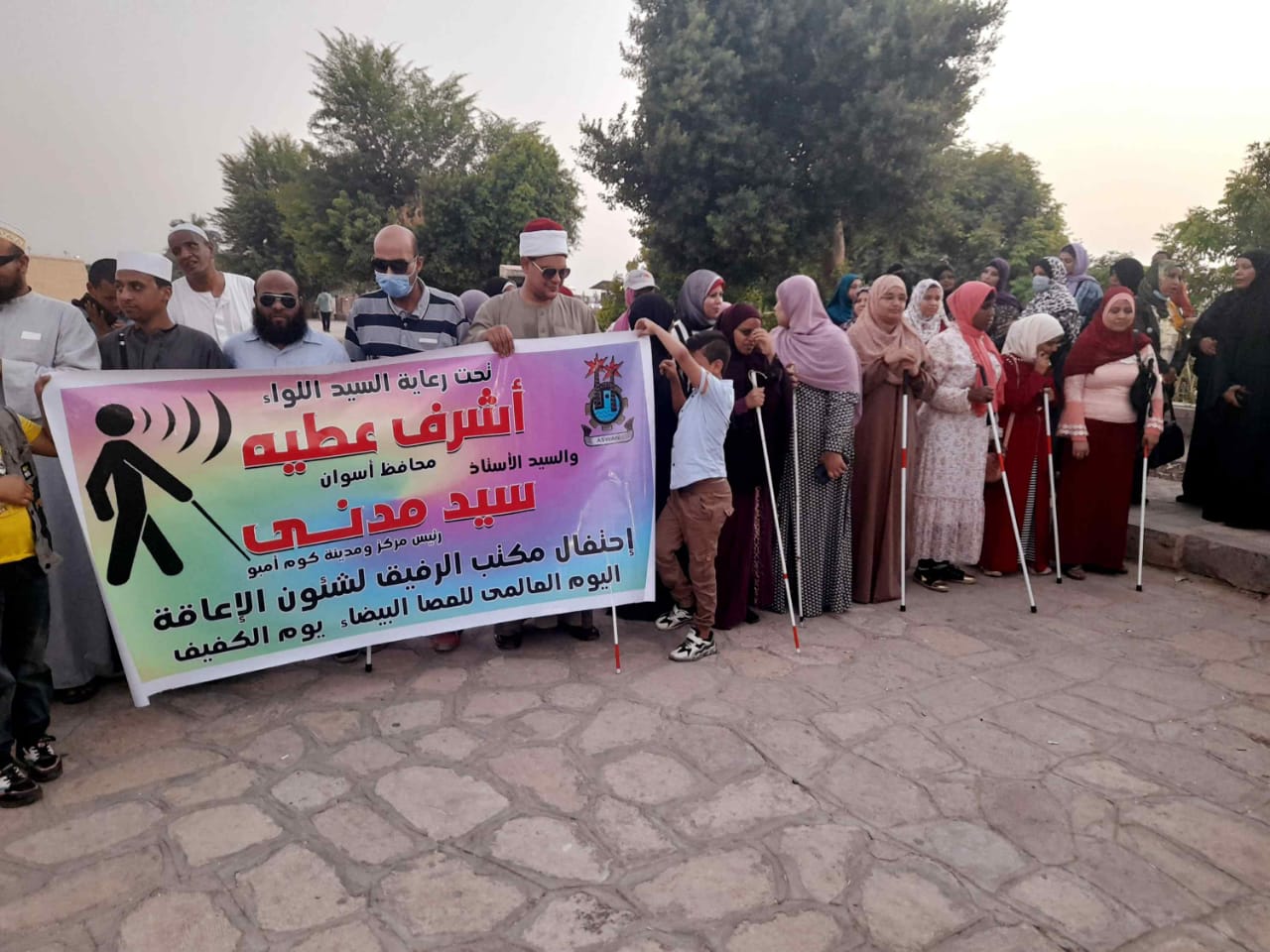 وانطلقت مسيرة العصا البيضاء للمكفوفين، من أمام معبد كوم أمبو واستمرت بطريق كورنيش النيل، بمشاركة عدد كبير من المكفوفين بمحافظة أسوان ومحافظات الصعيد المجاورة، حاملين بأيديهم العصا البيضاء وعلم مصر.