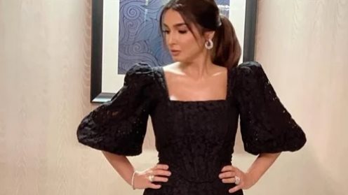 وظهرت روجينا بإطلالة جذابة ، حيث ارتدت فستان طويل يتسم بصيحة الكاب باللون الأسود المطرز بالكامل.