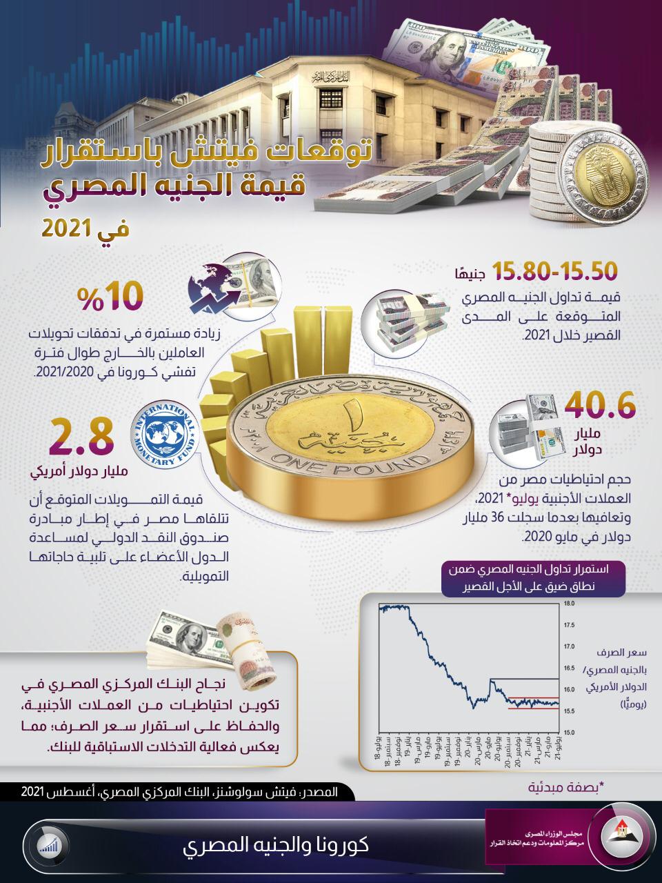 كما ترتكز السياسة المالية على هدف فائض أولي قدره 2٪ من الناتج المحلي الإجمالي على المدى المتوسط، لافتة إلى تفوق النمو الاقتصادي في مصر على الغالبية العظمى من الدول السيادية المصنفة في وكالة فيتش وسط تفشي فيروس كورونا، مدعومًا بالطلب المحلي المرن وإنتاج الغاز وبرنامج استثمار القطاع العام.