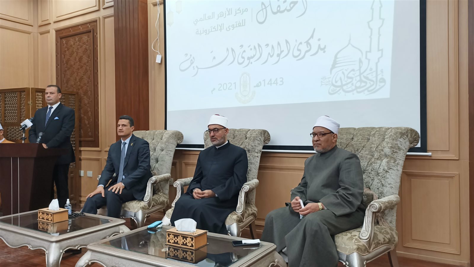 أقام مركز الأزهر العالمي للفتوى الإلكترونية، اليوم، احتفالية الأزهر بمناسبة المولد النبوي الشريف، وذلك بحضور الدكتور حسن الصغير أمين عام هيئة كبار العلماء، والدكتور نظير عياد أمين عام مجمع البحوث الإسلامية، والدكتور أسامة الحديدي المدير التنفيذي للمركز.