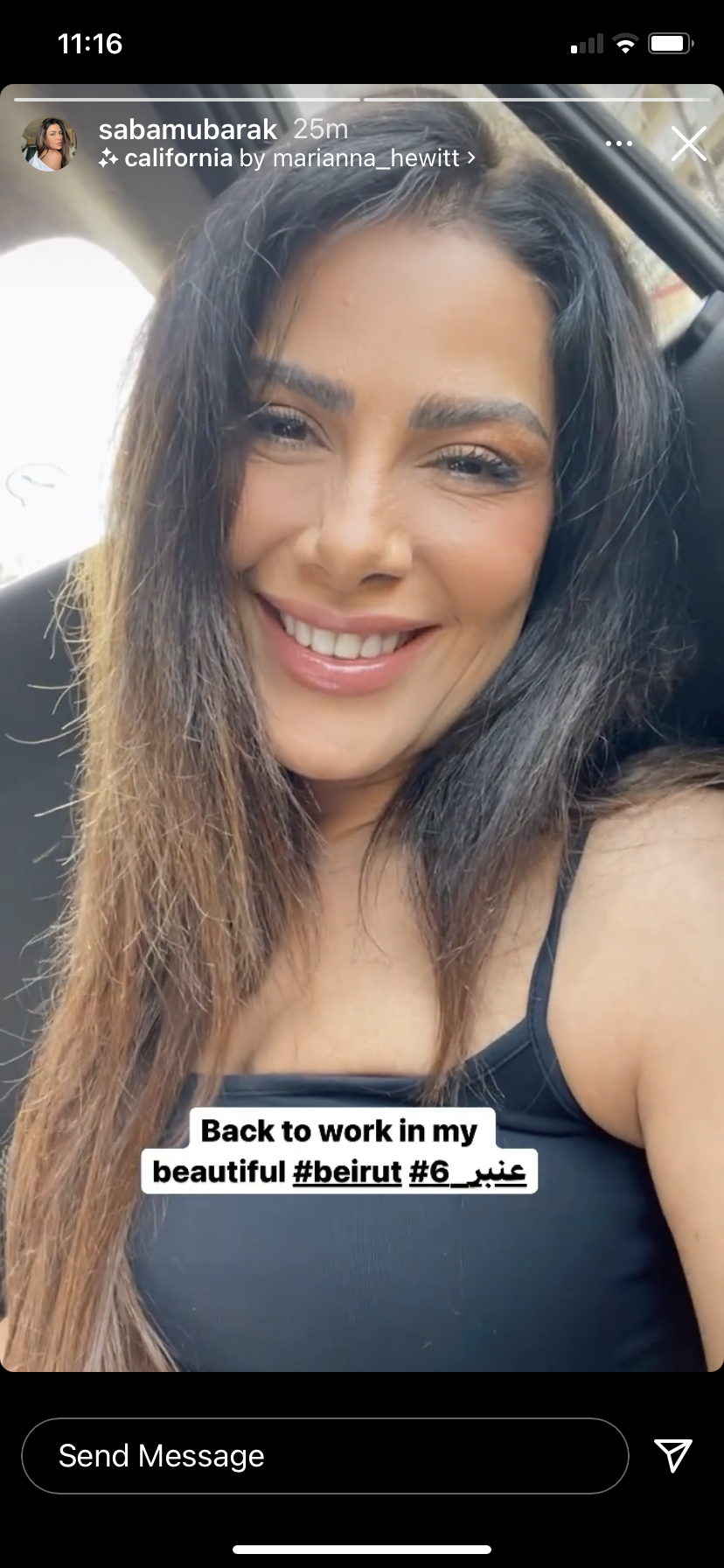 وظهرت صبا مبارك في الصورة باطلالة صباحية و علقت قائلة:" رجعت للشغل في بيروت…عنبر 6 “