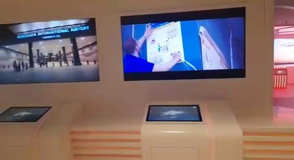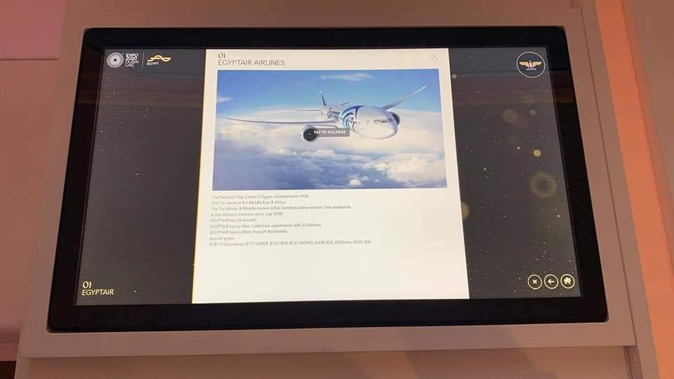 حيث قامت الوزارة بعرض فيلم تسجيلي عن أحدث مستجدات قطاع الطيران المدني فضلاً عن وجود شاشة تفاعلية يعرض عليها العديد من الخدمات واللوجستيات التي تقدمها الشركات التابعة للوزارة بالإضافة إلي عروض الطيران من وإلى دبى خلال فترة المعرض والأسعار الترويجية لعدد من الوجهات السياحية بمصر وبرامج سياحية تتناسب مع جميع الفئات.