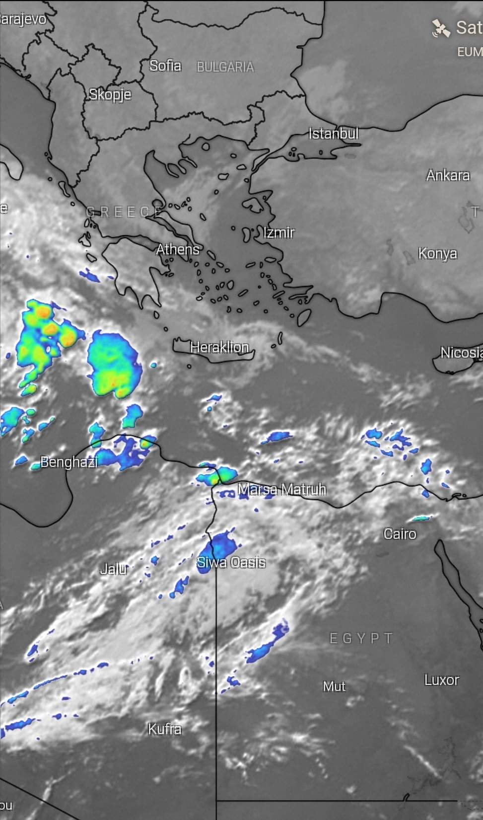 نشرت هيئة الأرصاد الجوية، صورا للأقمار الصناعية، تشير إلى تكون غطاء سحابي استوائي، يمتد ليشمل شمال البلاد، يجعل فرص سقوط الأمطار قائمة.
