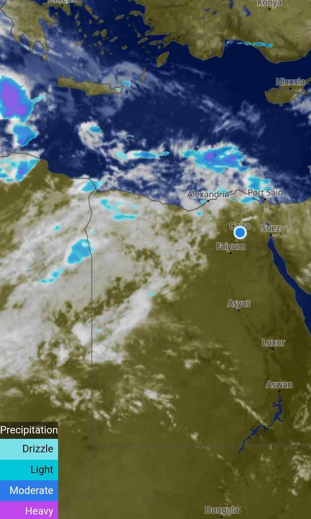 وحول الظواهر الجوية المؤثرة في الطقس غدا، يكون هناك أمطار متوسطة إلى غزيرة تكون رعدية أحيانا على مناطق من السواحل الشمالية وشمال الدلتا على فترات متقطعة، ويكون هناك أيضا أمطار خفيفة إلى متوسطة على مناطق متفرقة من القاهرة الكبرى وجنوب الدلتا، وأمطار خفيفة على شمال الصعيد أيضا بمناطق متفرقة.