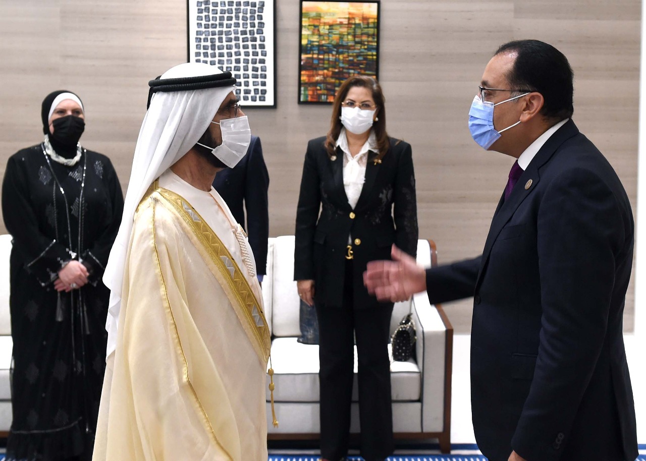 التقى الدكتور مصطفى مدبولى، رئيس مجلس الوزراء، الشيخ محمد بن راشد آل مكتوم، نائب رئيس دولة الإمارات العربية المتحدة، رئيس مجلس الوزراء، حاكم دبي، خلال زيارته معرض إكسبو 2020 دبى. وحضر المقابلة الدكتورة هالة السعيد، وزيرة التخطيط والتنمية الاقتصادية، والدكتور عاصم الجزار، وزير الإسكان والمرافق والمجتمعات العمرانية، ونيفين جامع، وزيرة التجارة والصناعة، وسفير مصر فى أبو ظبى.