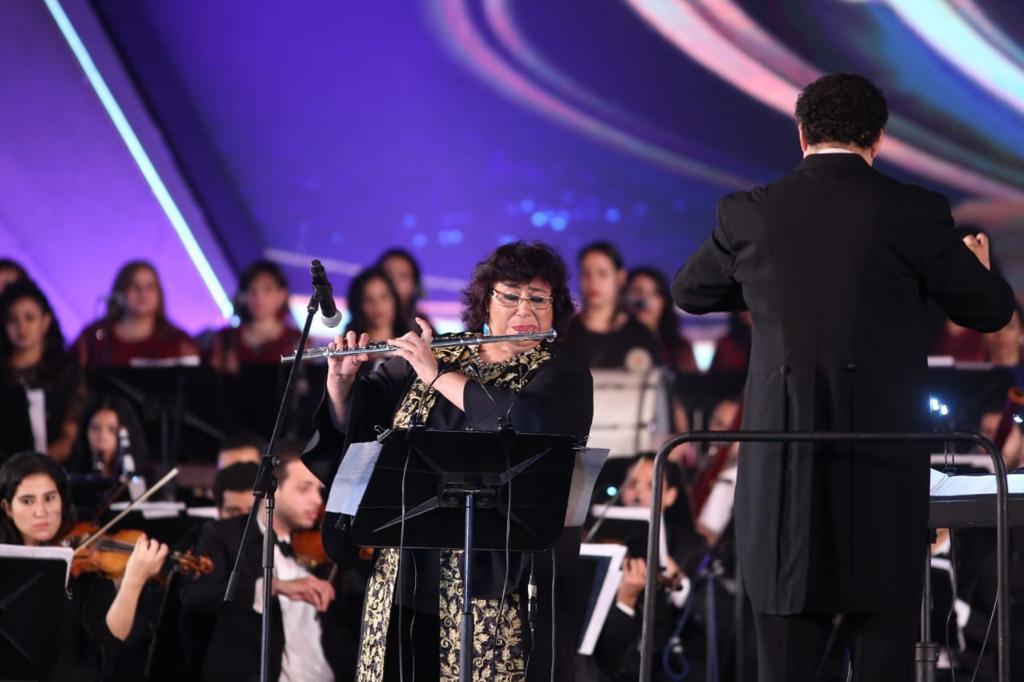 شاهد.. وزيرة الثقافة تعزف الفلوت وتشعل حفل افتتاح مهرجان الموسيقى العربية