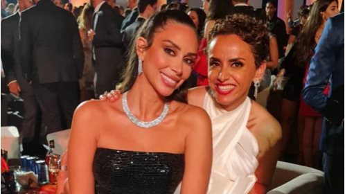 وظهرت بسنت شوقي في الصور مرتدية فستان أوف شولدر باللون الفوشيا، رافعة خصلات شعرها الي أعلي، مع ميك اب لوك بالالوان الوردية.