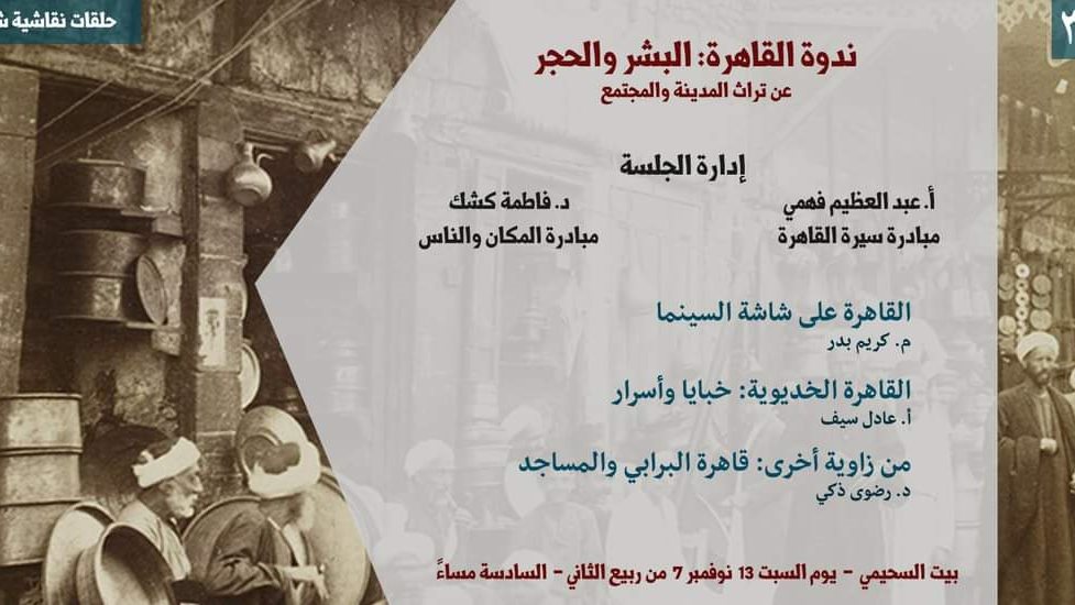 يستضيف بيت السحيمى يوم السبت الموافق ١٣ نوفمبر، الندوة الشهرية التي تنظمها مبادرتا “سيرة القاهرة” و"المكان والناس"، تحت رعاية "بيت المعمار المصري" وصندوق التنمية الثقافية، ويدير الندوة الباحث في التاريخ الأستاذ عبد العظيم فهمي، والدكتورة فاطمة كشك.