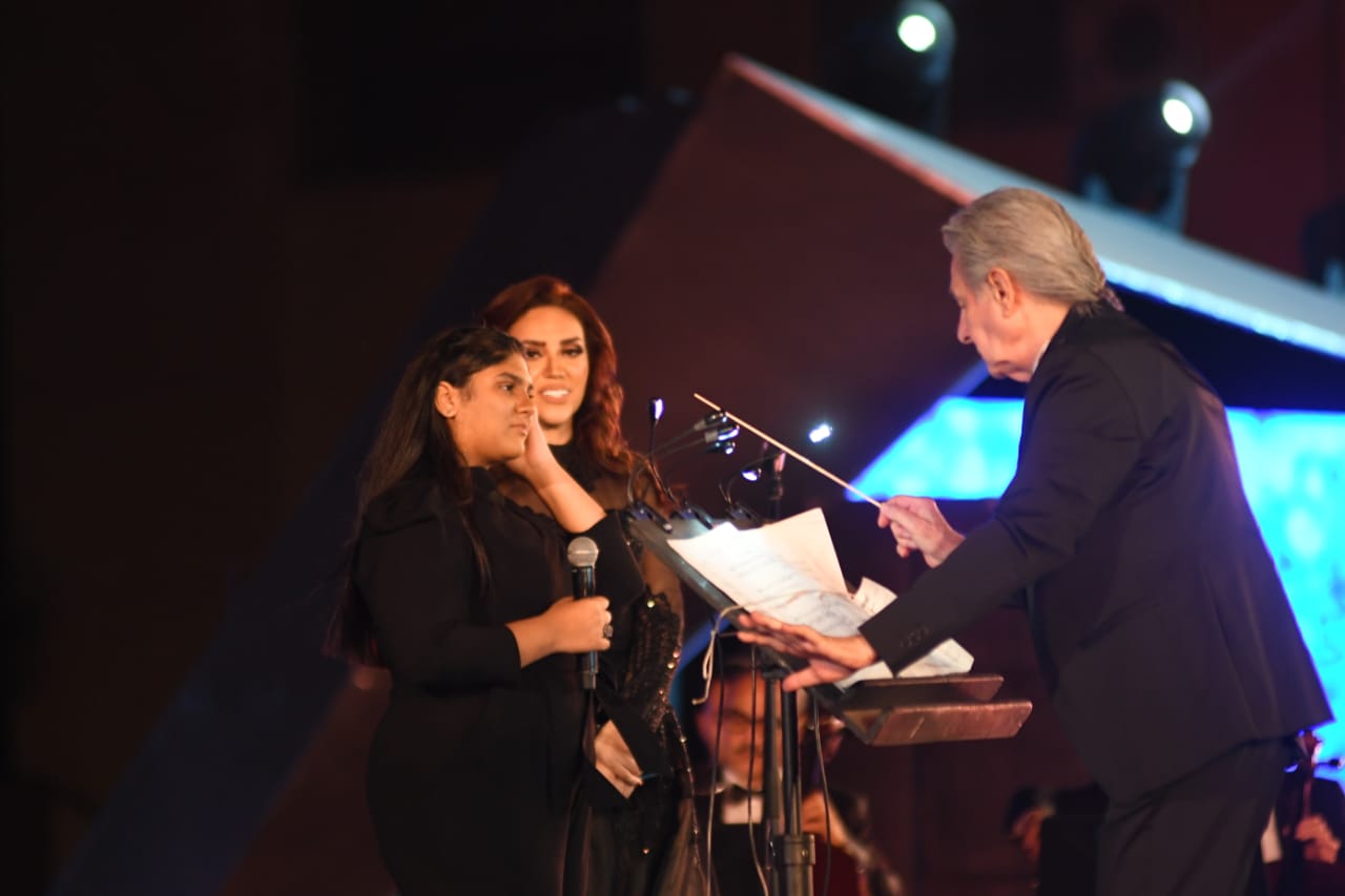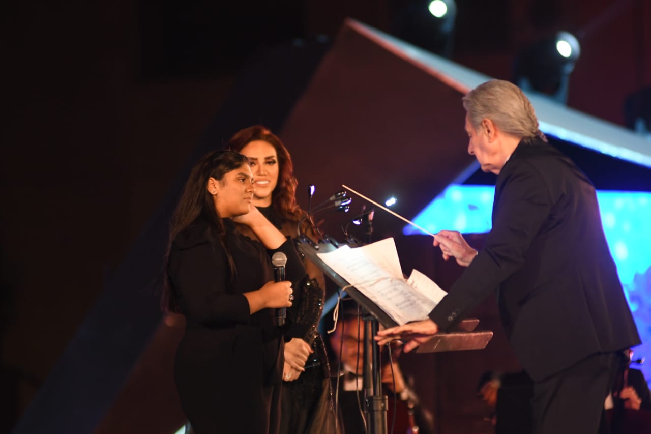 حرصت المطربة مي فاروق على أن تغني على المسرح خلال مهرجان الموسيقى العربية برفقة ابنتها زينة التي صعدت معها وسط احتفاء كبير وتصفيق من الحاضرين.