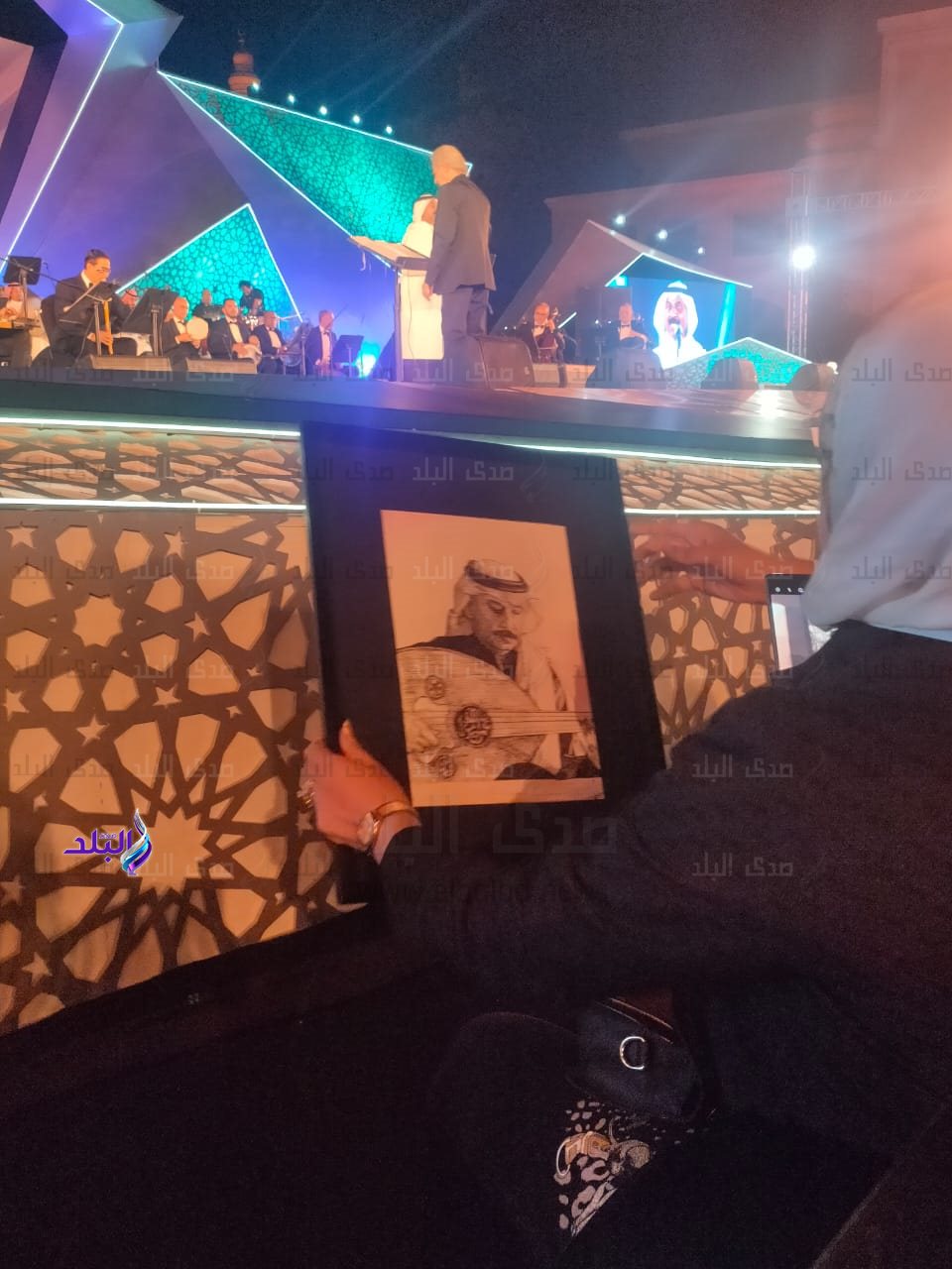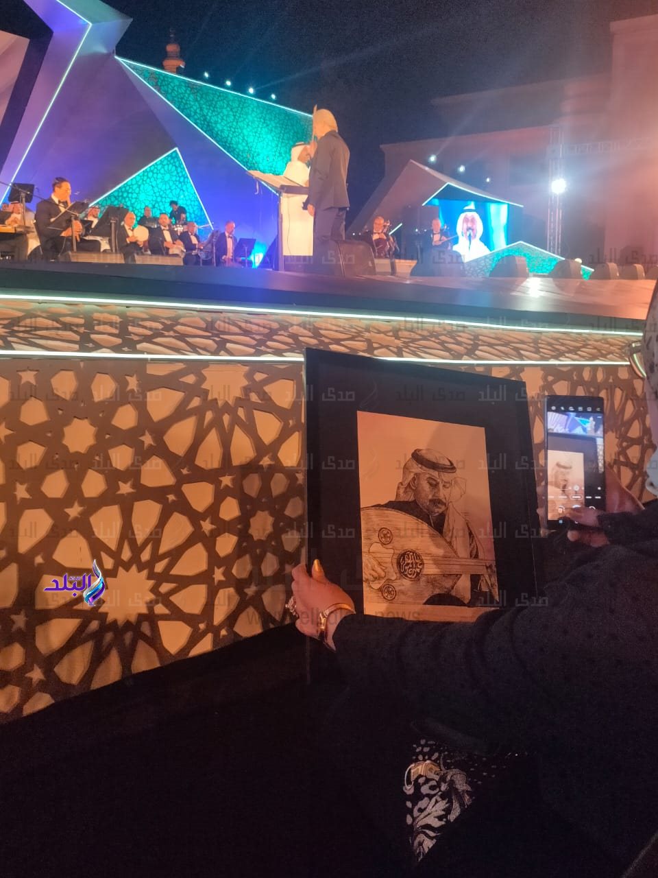 وحرص احد الحاضرين على تجهيز هدية خاصة لأخطبوط العود "عبادي" وهى ولوحة مرسومة خصيصا له وهو يمسك العود.