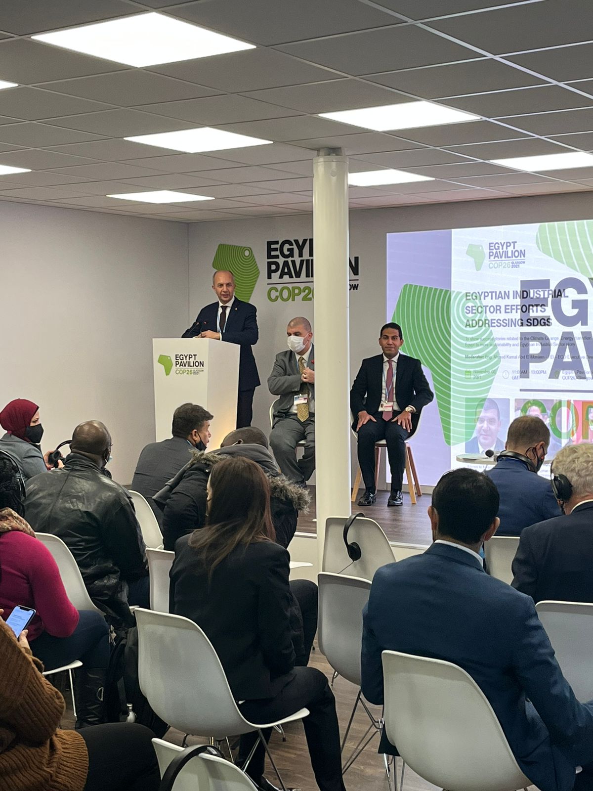 قام الجناح المصري اليوم بتنظيم جلسة نقاشية تحت عنوان دراسة حالة للاقتصاد الدائري للقطاع الصناعي المصري" الطريق نحو التنمية الصناعية الخضراء بالتعاون مع وزارة التجارة و الصناعة واتحاد الصناعات المصرى ،وذلك على هامش مشاركة مصر بمؤتمر الأطراف لاتفاقية الأمم المتحدة لتغير المناخ السادس و العشرون COP26 بجلاسكو بالمملكة المتحدة فى الفترة من 31 اكتوبر و حتى 12 نوفمبر الجارى .